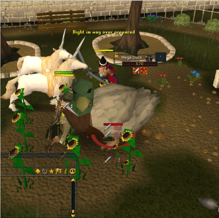 Right, let me start with the basics. This month one of the major updates Jagex brought to the game was the introduction of boss pets. These included pets ranging from Nex, Bandos and to my all-time favourite: Mega Duck. When this update first went live, I managed to put a small team together of clan members and we headed to Falador Park where we had to feed a drake 21 pieces of bread crumbs within 20 seconds. It took us a few tries, but we finally managed to summon Mega-Duck in all its quacky glory, and boy, was it adorable! I’ve attached a few screenshots below of our epic duck hunting fun.